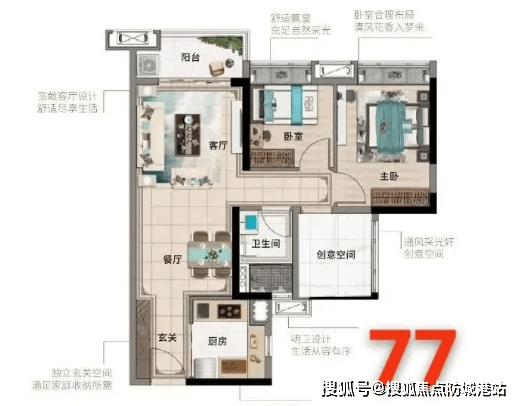 项目户型面积段丰富,覆盖 73-124㎡三房至四房,得房率 80%,适配刚需与改善多元需求。73㎡三房一卫,紧凑实用,总价 80-90 万起,低门槛入手三房,适合单身或新婚家庭;84-88㎡三房两卫,布局方正,动静分区,主卧带独立卫浴,满足三口之家居住需求;96㎡四房两卫,预留灵动空间,可改造为书房或儿童房,适配多代同堂;124㎡四房两卫,阔绰空间尺度,客厅与阳台相连,采光通风佳,适合改善型家庭。全系精装交付,省去装修烦恼,即买即住。